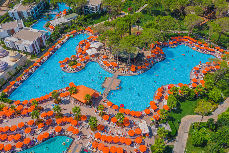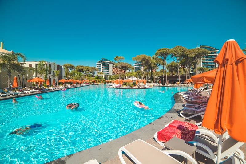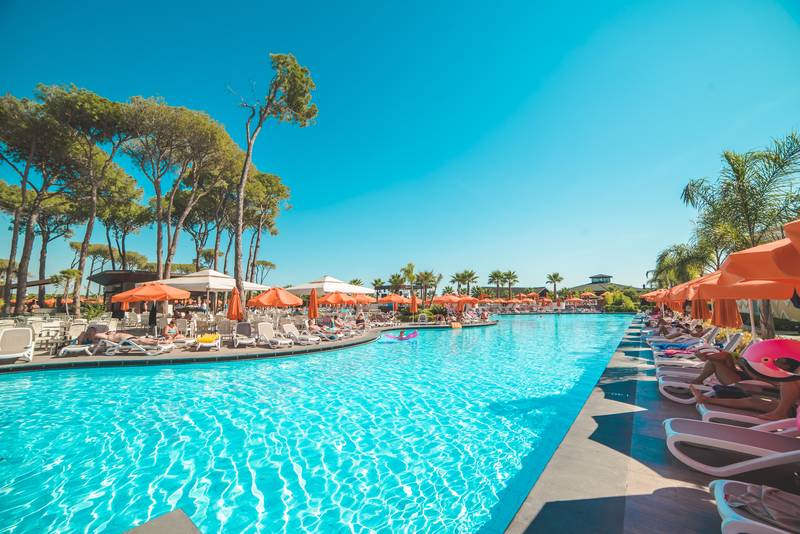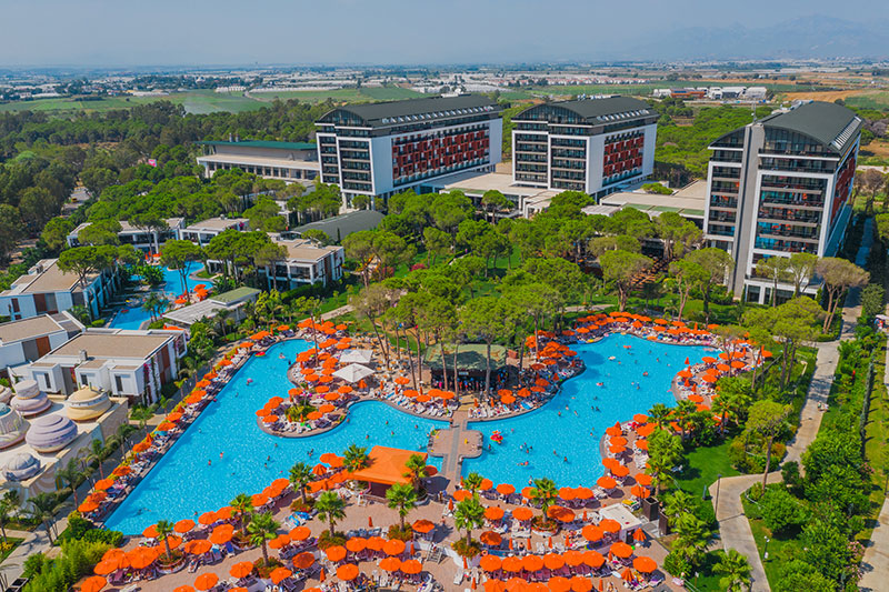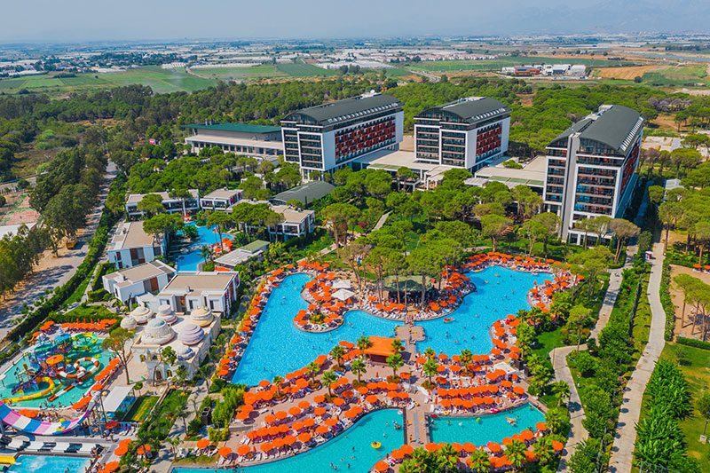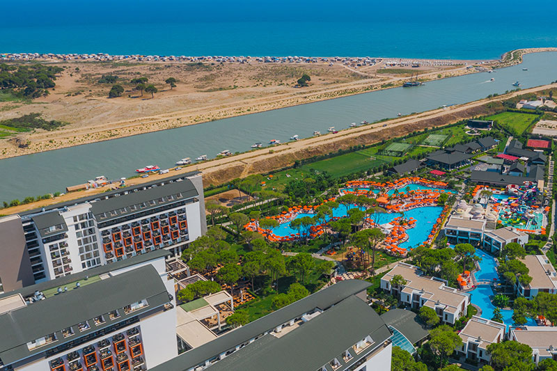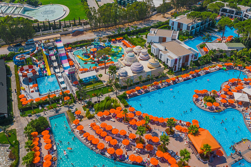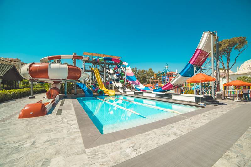 hlavná reštaurácia • 5 a la carte reštaurácií • snack reštaurácia • cukráreň • 8 barov • diskotéka • nákupná pasáž • bezplatné Wi-Fi pripojenie • SPA centrum • lekár • 3 vonkajšie bazény • vnútorný bazén • 2 detské bazény • aquapark s 10 šmýkačkami pre deti aj dospelých • miniklub • detské ihrisko • herňa • plážový volejbal • vodné pólo • tenisový kurt • biliard • bowling • fitnescentrum • basketbalové ihrisko • animačný tím Klub Leto v termíne 28.6. - 2.9.2026
