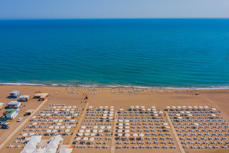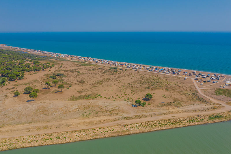 krásna piesková pláž v chránenej prírodnej oblasti ocenená Modrou vlajkou • pozvoľný vstup do mora • bezplatný plážový servis • centrum vodných športov za poplatok • pohodlná doprava na pláž loďkou