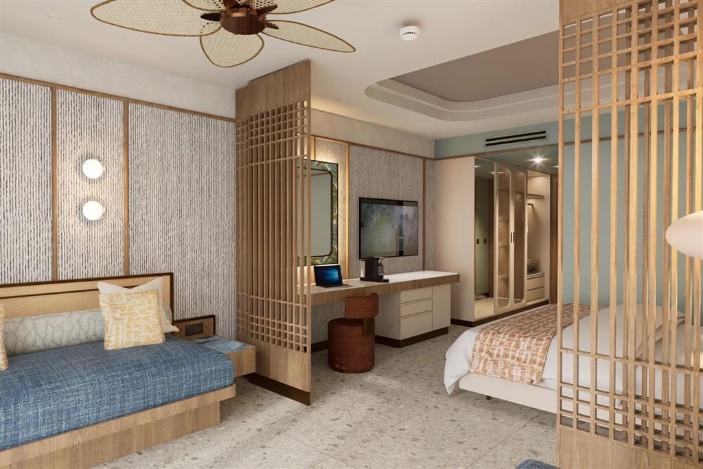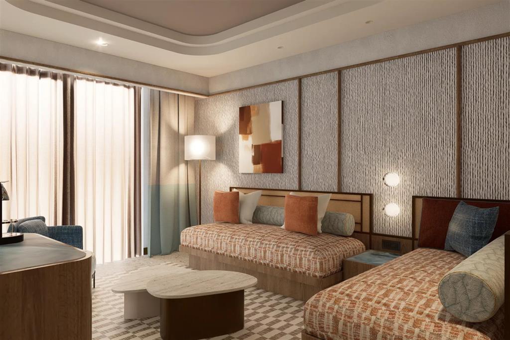 moderne zariadené dvojlôžkové izby typu deluxe s možnosťou až 2 prísteliek • izby deluxe superior a rodinné suity za príplatok • kúpeľňa s WC a sušičom na vlasy • klimatizácia • TV • telefón • trezor • minibar • set na prípravu kávy a čaju • nespresso kávovar • bezplatné Wi-Fi pripojenie • župan a papučky • balkón