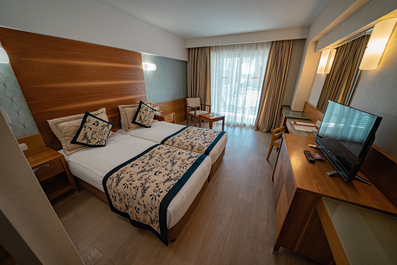 2-lôžkové izby • suity za príplatok • kúpeľňa s WC a sušičom na vlasy • klimatizácia • SAT TV • telefón • trezor za poplatok • minibar • balkón • príslušenstvo na prípravu kávy a čaju