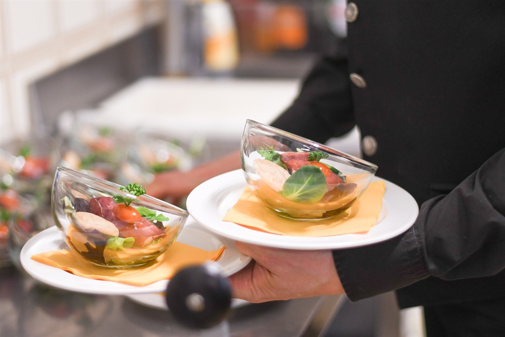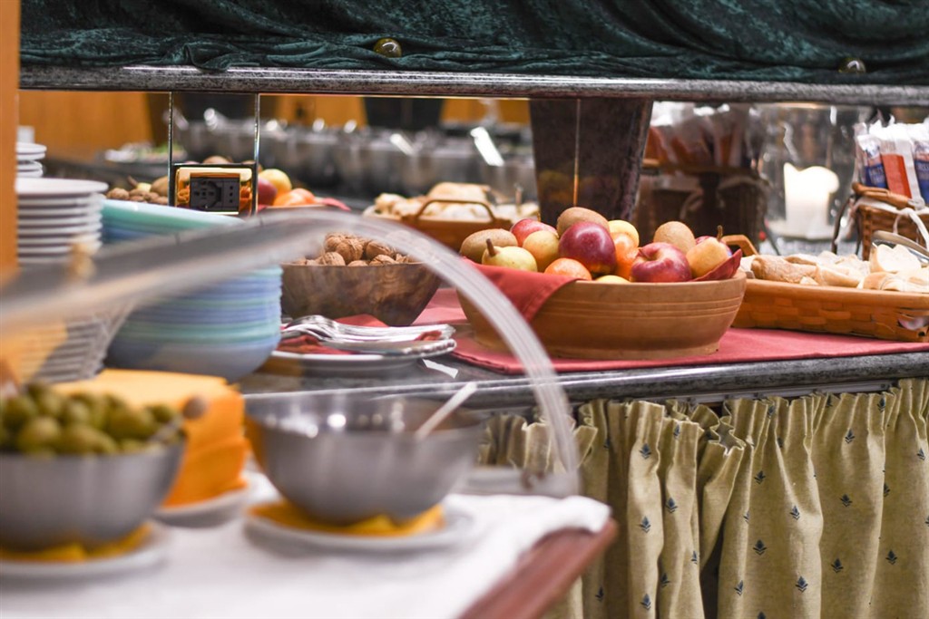 večera: servírované menu (4 chody) – polievka, teplé predjedlo, hlavné jedlo (možnosť výberu vegetariánskeho alebo mäsového) a dezert, ovocný a šalátový bufet, nápoje za poplatok