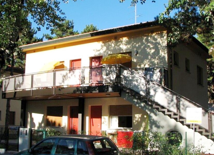Vila NORMA (Via Ariete) se nachází kousek od lázní na pomezí centrální části Bibione Spiaggia a novější části Bibione Terme. Ke každému apartmánu náleží parkovací místo a klientům je k dispozici společná zahrada. Všechny apartmány mají vlastní sociální zařízení, TV/SAT, Wi-Fi a klimatizaci. Typ B má sprchu, ostatní typy sprchový kout. Typ trilo má terasu v přízemí nebo balkon. Apartmány typu bilo jsou bez balkonu a menších rozměrů.