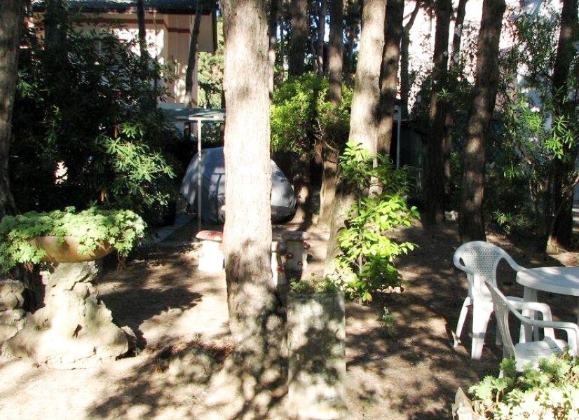 zahrada, piniový háj, oplocený areál