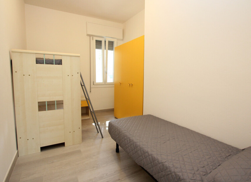 ložnice s manželskou a patrovou postelí, obývací pokoj s kuchyňským koutem, apartmán určen pro 3 osoby