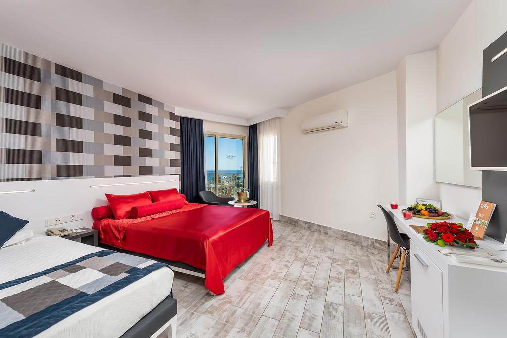 120 izieb • balkón • klimatizácia • sušič na vlasy • telefón za poplatok • SAT TV • minibar • trezor za poplatok • rýchlovarná kanvica • set na prípravu kávy a čaju • papuče • wifi • štandardné izby s výhľadom na krajinu: 28 m2, max. pre 2 osoby • štandardné izby s bočným výhľadom na more: 28 m2, max. pre 3 osoby • štandardné izby s výhľadom na more: 30 m2, max. pre 3 osoby • superior izby: 36 m2, max. pre 4 osoby, s výhľadom na more • premium izby: 30 m2, max. pre 3 osoby, terasa, s bočným výhľadom na more • deluxe izby: 36 m2, max. pre 4 osoby, jacuzzi, s výhľadom na more
