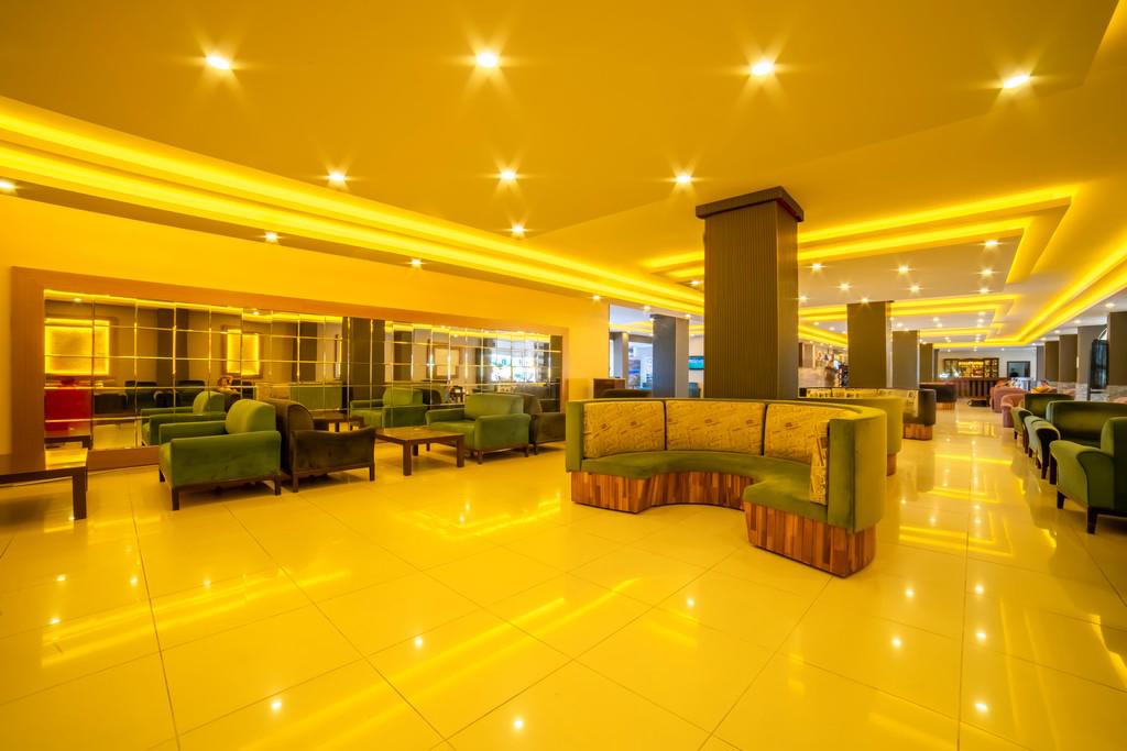bazény so slnečníkmi a ležadlami • vnútorný bazén • tobogany • hlavná reštaurácia • bary (lobby, pool, beach...) • animačné programy • diskotéka • fitness • aerobik • aqua aerobik • stolný tenis • basketbal • mini futbal • šípky • plážový volejbal • TV kútik • knižnica • turecký kúpeľ • sauna • za poplatok: SPA centrum • procedúry tureckého kúpeľa • jacuzzi • masáž • salón krásy • obchody • práčovňa • lekárska služba • vodné športy na pláži • konferenčná miestnosť • wifi