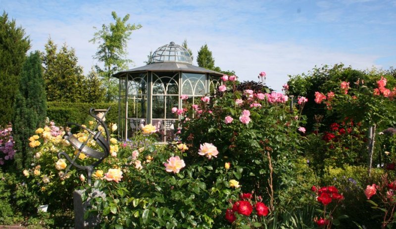 Milovníci týchto nádherných kvetov môžu obdivovať i plazivé ruže, ktoré vytvárajú skutočné kaskády ruží..