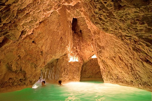 Tieto kúpele sú v Európe skutočne ojedinelé. Je to neporovnateľný zážitok, kúpať sa v bazéne v prírodnej jaskyni, ktorá má navyše vďaka termálnej vode vyvierajúcej v hĺbke hory príjemnú teplotu. Voda má zároveň veľmi nízke množstvo soli, takže v nej môžete stráviť pokojne aj celý deň. Vďaka jaskyni si môžete zároveň užiť čistý a jemný vzduch. Kúpele zahŕňajú aj ďalšie bazény, rôzne možnosti aquaterapie, či saunový svet.