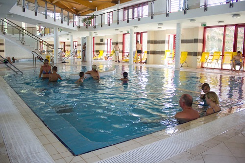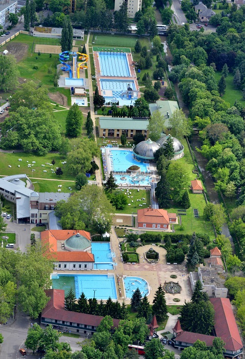 Severná časť kúpaliska je skôr tichšou kúpeľnou časťou s termálnou vodou, kým na južnej časti nájdete miesto na kúpanie pre deti a mladšiu generáciu. Vodný komplex privíta hostí túžiacich po odpočinku a relaxe so svojimi siedmimi bazénmi, Wellness domom, Welness Ház a nájdete tu aj 5,30 hektáru parku.