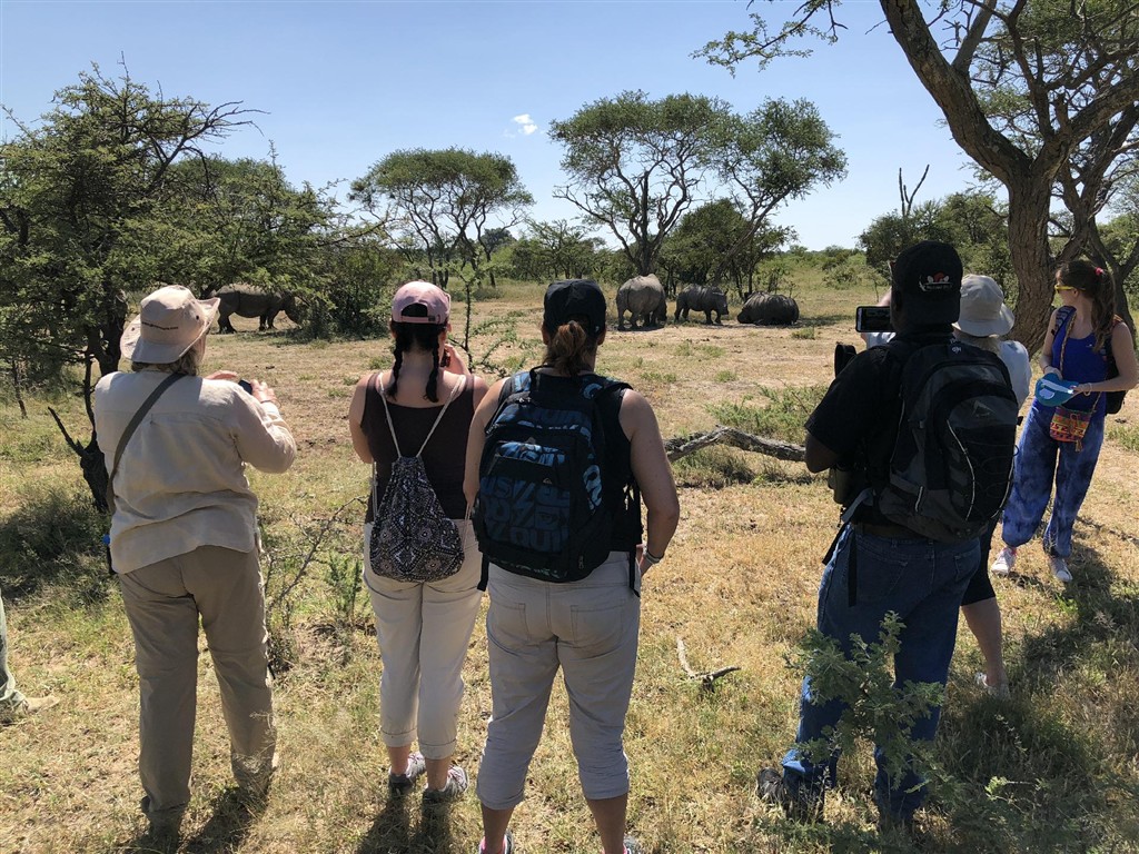 Dnes nás čaká lahôdka - totiž pešie stopovanie nosorožcov. Verte neverte, ale byť vo voľnej prírode a zároveň desať metrov od kolosu s hmotnosťou 2,5 tony je čosi, na čo sa hneď tak nezabúda. Nasleduje obed v prekrásnom prostredí Matobo Hills Lodge a potom peší výlet (zvládnu aj menej zdatní) k hlbokým rozsadlinám so vzácnymi jaskynných maľbami - bush paintings, ktoré sú tiež na zozname UNESCO. V závere dňa sa zastavíme v neďalekej dedine, kde sa zoznámime s životom obyvateľov Zimbabwe.