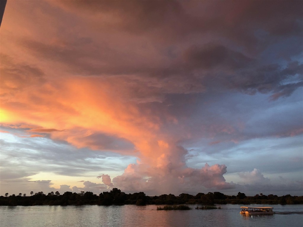 Skoro ráno posledné safari 4x4 v NP Hwange - veľa šťastia! Po raňajkách odchod do Victoria Falls. Po príchode a ubytovaní odporúčame návštevu koloniálneho Victoria Falls Hotel z roku 1904 a Batoga Gorge - vyhliadky na úchvatný katarakt Viktóriiných vodopádov a zúrivé masy rieky Zambezi, ktorá sa snaží vymaniť zo zajatia stiesnených priestorov skalnej strže pod vodopádmi. Štýlové Lookout Café nám tu bude dobrým spoločníkom. Popoludní je potom prichystaná plavba po rieke Zambezi. V zlatej farbe zapadajúceho slnka a s drinkom niečoho tvrdšieho v ruke sa oddáte hrejivej atmosfére početných delt rieky.